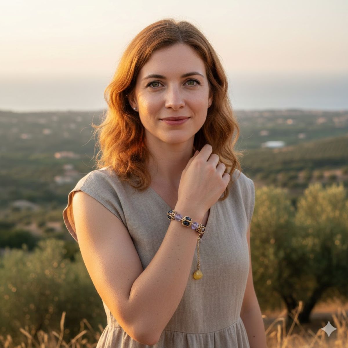 Ensuite, le Bracelet A Sposa se décline en plusieurs coloris raffinés, tels que le bleu profond, le gold étincelant ou le violet mystérieux. Puisque nous sélectionnons uniquement des matériaux de qualité, nous utilisons des perles facettes de Bohème et de l’améthyste véritable. Par ailleurs, le montage sur fil câblé assure une solidité optimale à l’ensemble. La finition en acier inoxydable garantit également un bijou sain, car il ne contient ni cadmium, ni nickel, ni plomb.