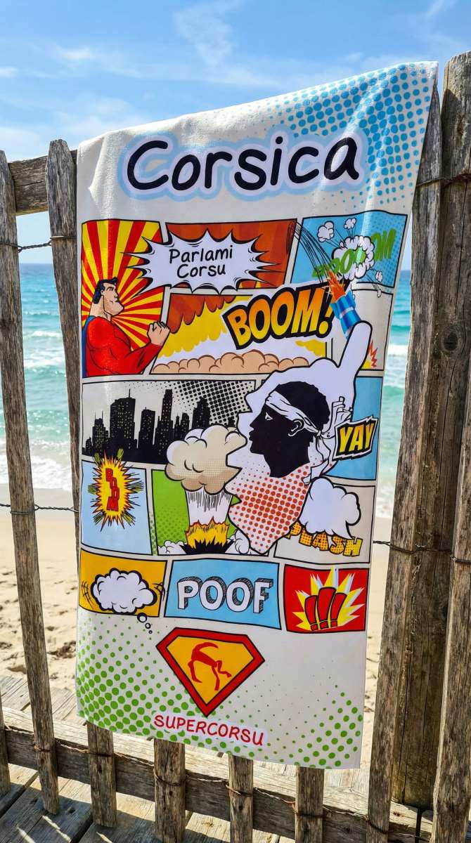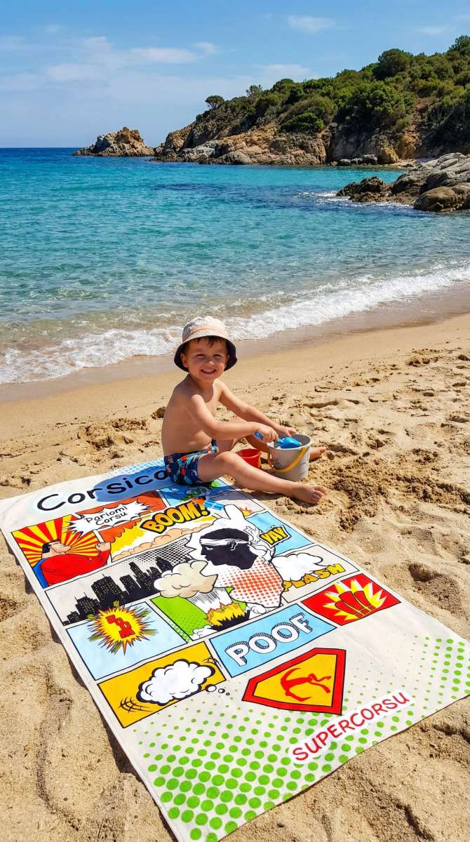Optez pour la serviette Supercorsu et démarquez-vous cet été. Inspiré par l’univers coloré des bandes dessinées, son design attire tous les regards. Imaginez-vous détente sur la plage, bercé par les couleurs chaudes du coucher de soleil. Ce drap est bien plus qu’un simple accessoire : c’est une invitation à l’évasion et à la créativité. Rejoignez la communauté Supercorsu et faites de cet été une expérience unique !