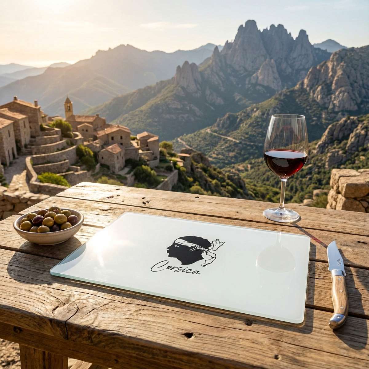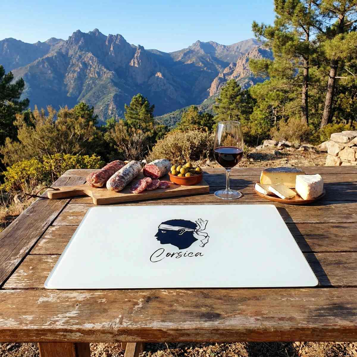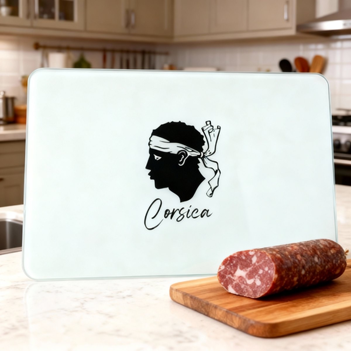 D’une élégance sobre, cette planche à découper « Maure » présente une tête de Maure Corse dans une attitude pleine de vie. Le noir du dessin se détache avec raffinement sur le fond blanc, tandis que l’inscription cursive “Corsica” située en dessous, apporte une touche d’authenticité. Un objet à la fois esthétique et fonctionnel.