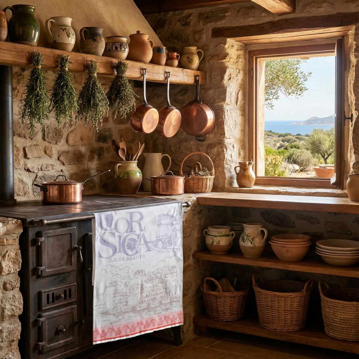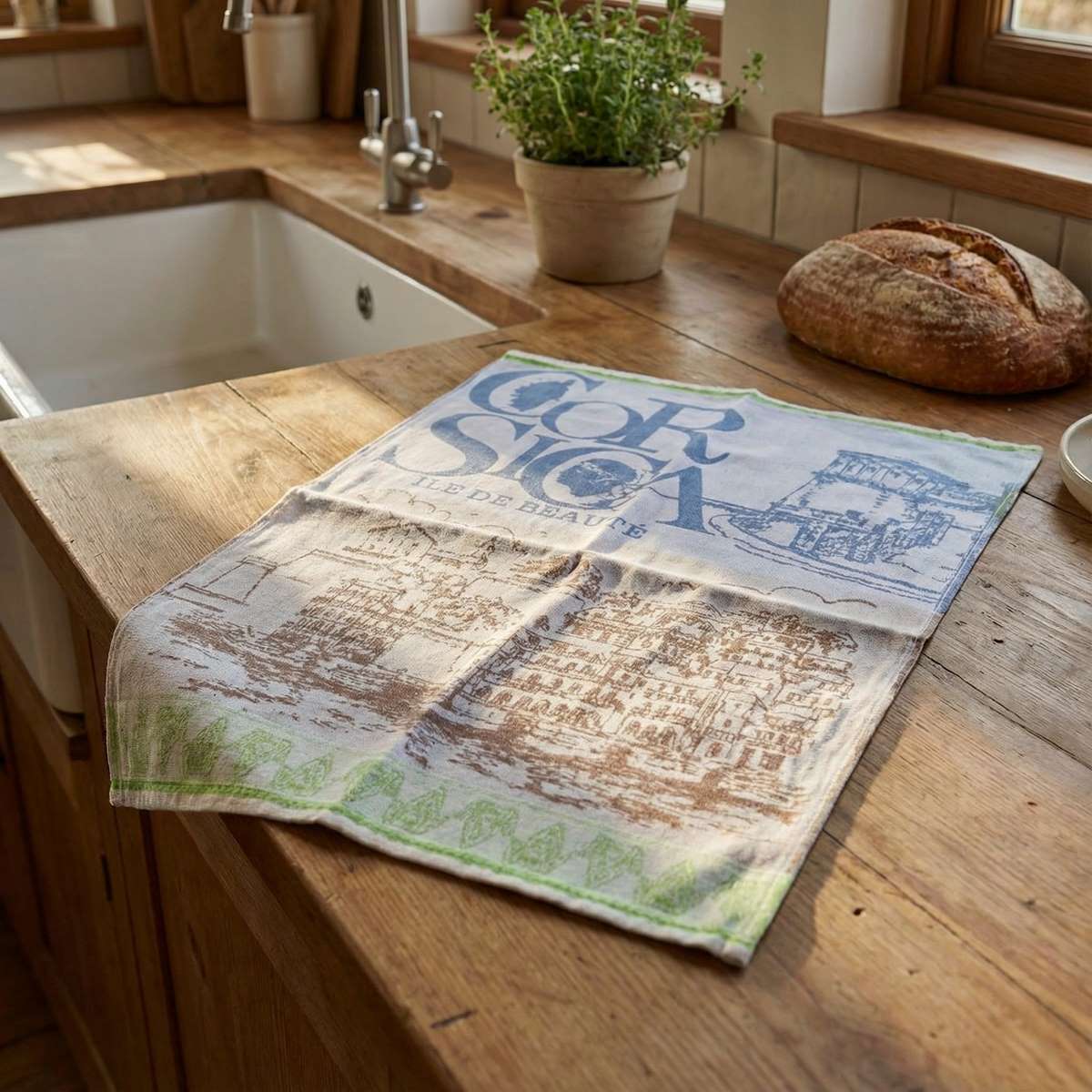Le Torchon U Casone est surtout un accessoire de cuisine décoratif, peint souvent sous la forme d’un village Corse. Fabriqué sur la base de 90% de coton, d’origine naturelle, pratique pour sécher la vaisselle, mais aussi pour ajouter une touche de charme régional à votre cuisine.